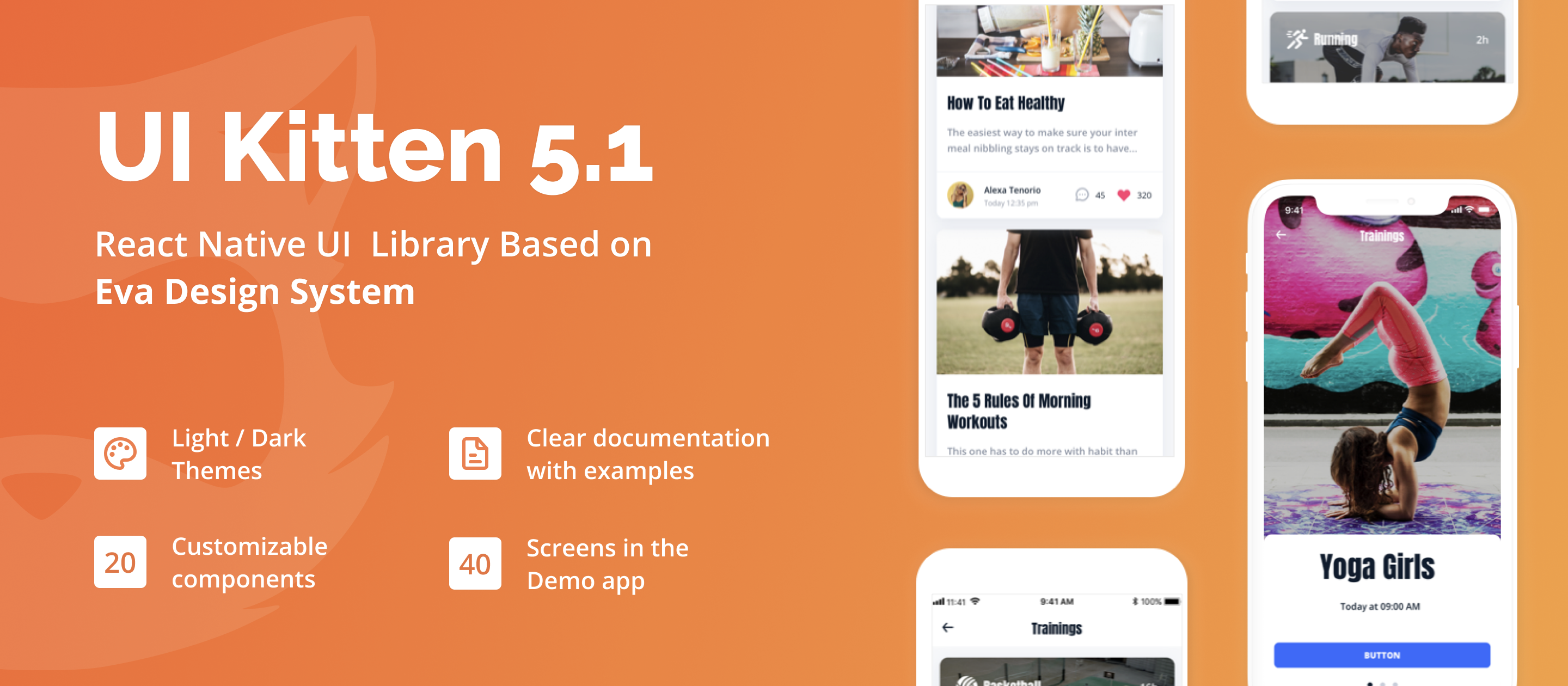- Open-source and actively maintained: UI Kitten is open-source and regularly updated, benefiting from a strong community and active development.